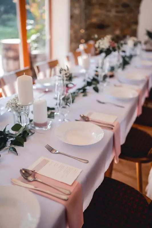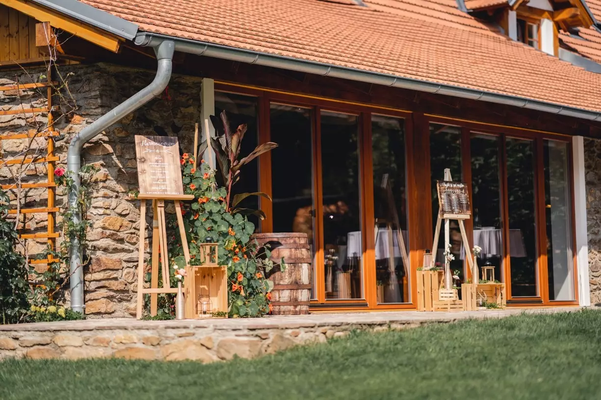 Barunka a Michal si pro svůj velký den vybrali elegantní přírodní dekorace, které se dokonale snoubily s okolní krajinou. Každý detail byl promyšlený s cílem vytvořit uvolněnou a přátelskou atmosféru. Odpočinková zóna pod širým nebem poskytovala hostům místo, kde si mohli chvíli odpočinout a vychutnat si magii dne. Hexagonová svatební brána obalená květy v odstínech starorůžové a krémové, vytvářela dokonalý rámec pro jejich venkovní obřad. Ale co dělalo tento den opravdu výjimečným, nebyly jen tyto nádherné detaily. Byl to pocit, který se nesl vzduchem. Když pak Slunce zapadlo a obloha se rozsvítila hvězdami, tanec uvolnil všechny emoce a prskavky přidaly na té oslavě života pravou jiskru.