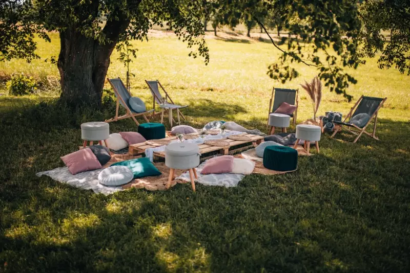 Ve stínu pod starým stromem vznikla malá oáza klidu, kde si hosté mohli odpočinout od tanečního parketu a vychutnat si momenty tohoto překrásného dne.
